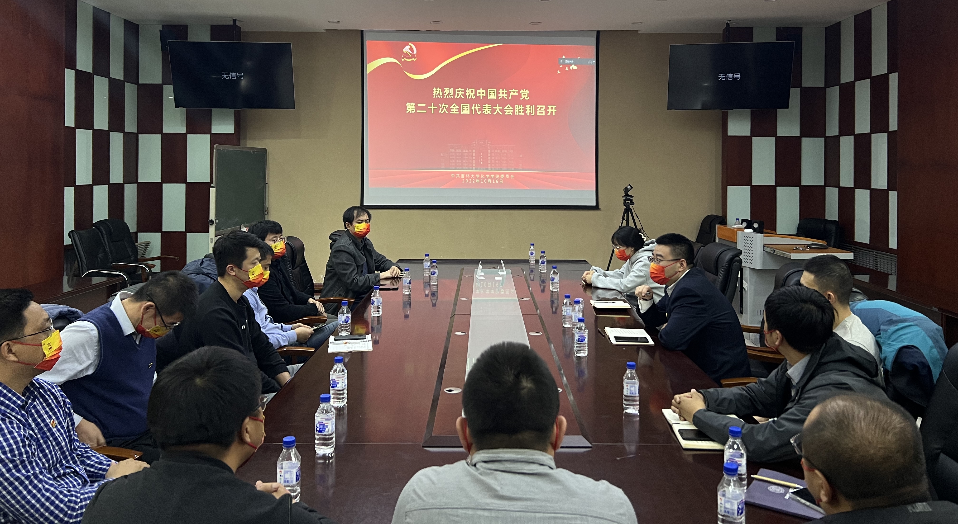直播结束后,在唐敖庆楼A308会议室线下分会场集中收看的驻校教师和学生党员代表各抒己见,发表感悟,共庆中国共产党第二十次全国代表大会胜利召开!