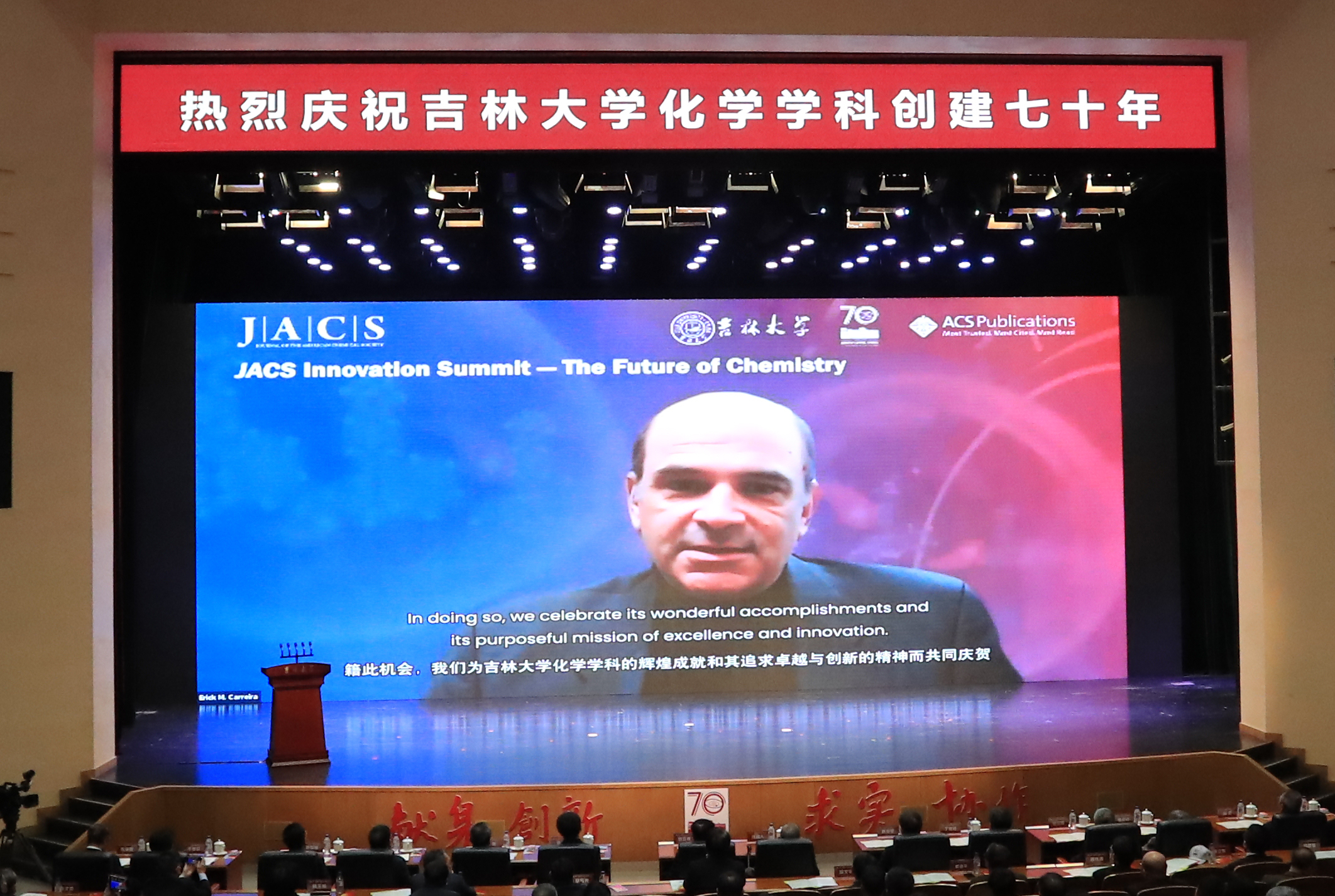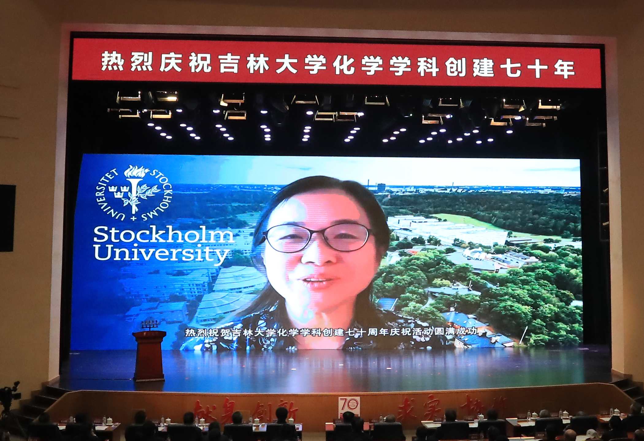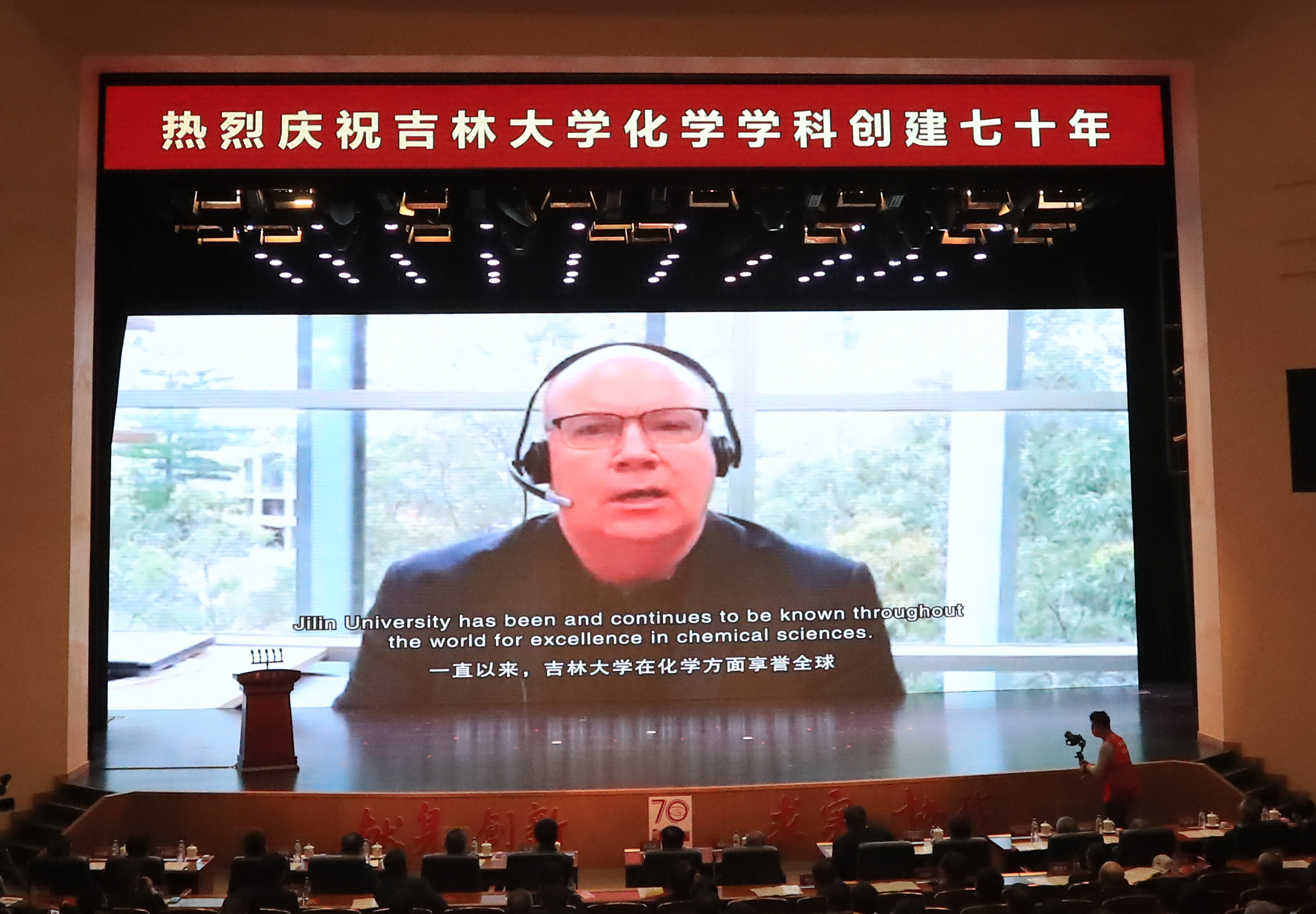 化学学科创建70年专题片、院庆年系列活动掠影以及海内外校友和各地校友会发来的祝贺视频。上午9时30分,庆祝大会在庄严的国歌声中启幕。