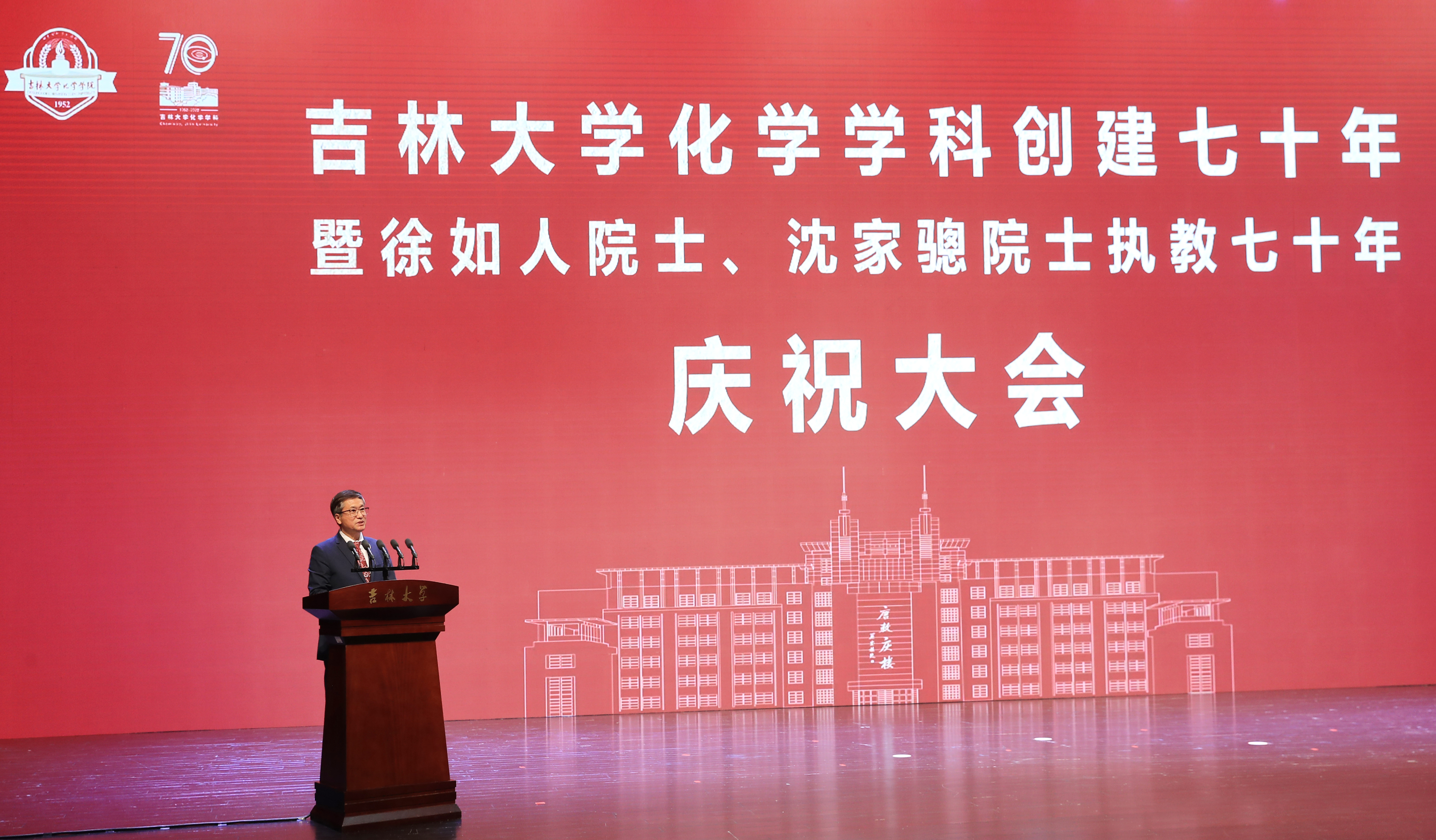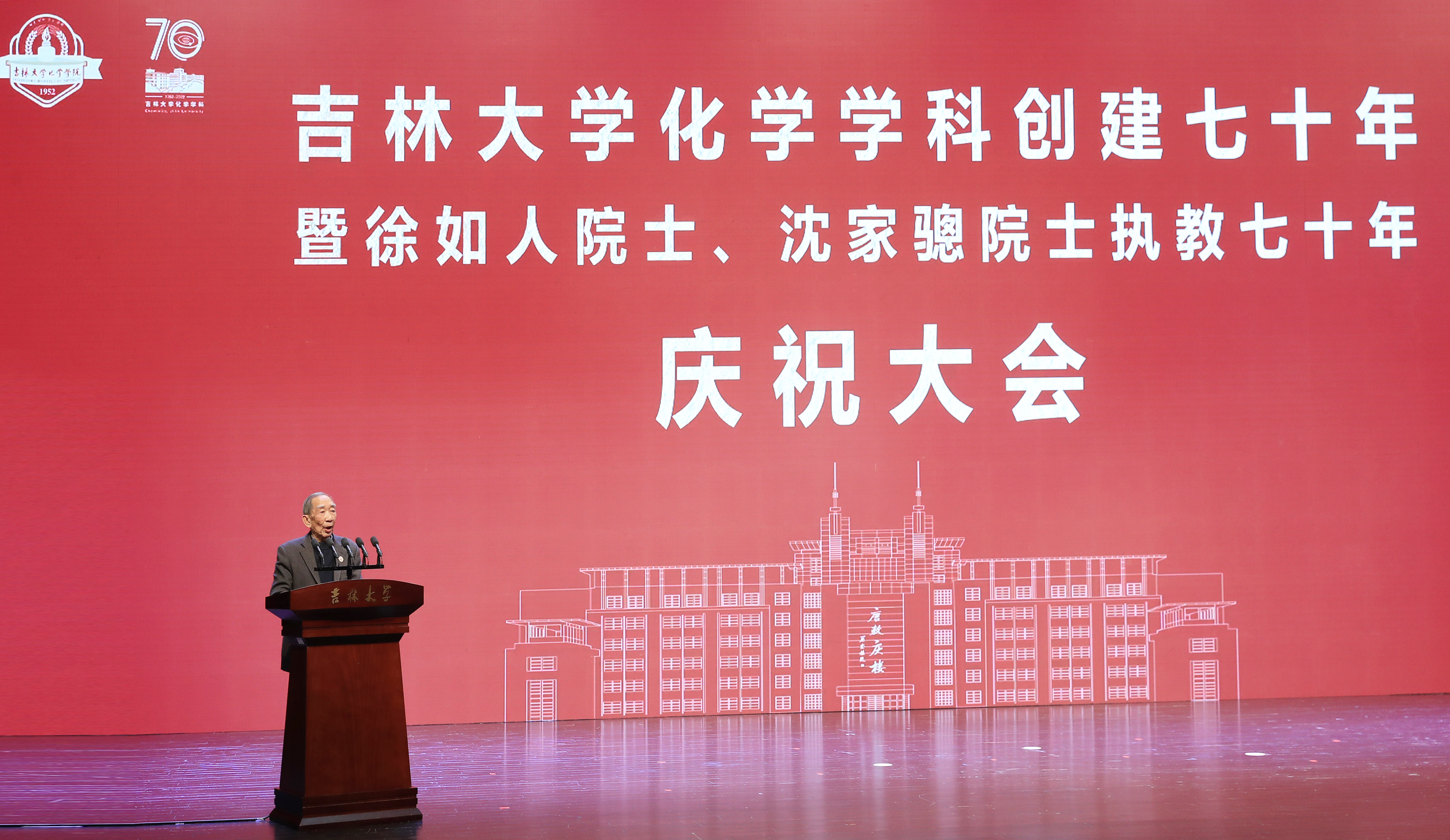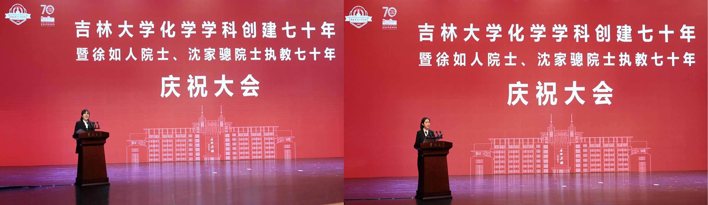 教师发言,向吉大化学七十华诞表示祝贺,向徐如人院士、沈家骢院士致以崇高敬意和诚挚祝福。她表示,吉大化学的发展始终与国家高质量人才培养紧密相连,始终与国家重大需求紧密相连,始终与国际科技前沿紧密相连,始终与服务社会紧密相连,培养了一大批杰出人才,打造了一支堪当科教强国重任的师资队伍。站在新的历史起点上,学院广大教师将坚决扛起深入实施科教兴国战略、人才强国战略、创新驱动发展战略重大职责使命,传承优良传统,紧握接力棒,把化学学科推向新的高峰,在中华民族伟大复兴新征程上谱写新的荣耀与辉煌。