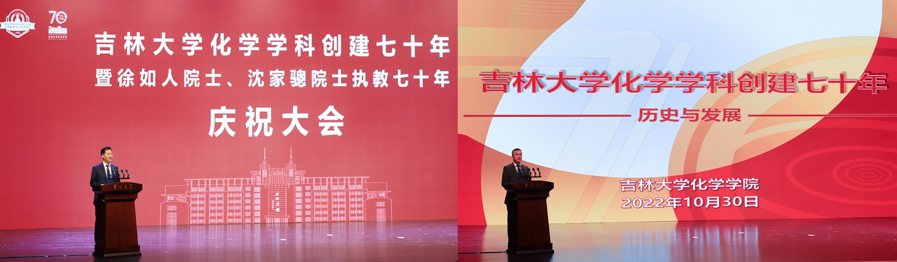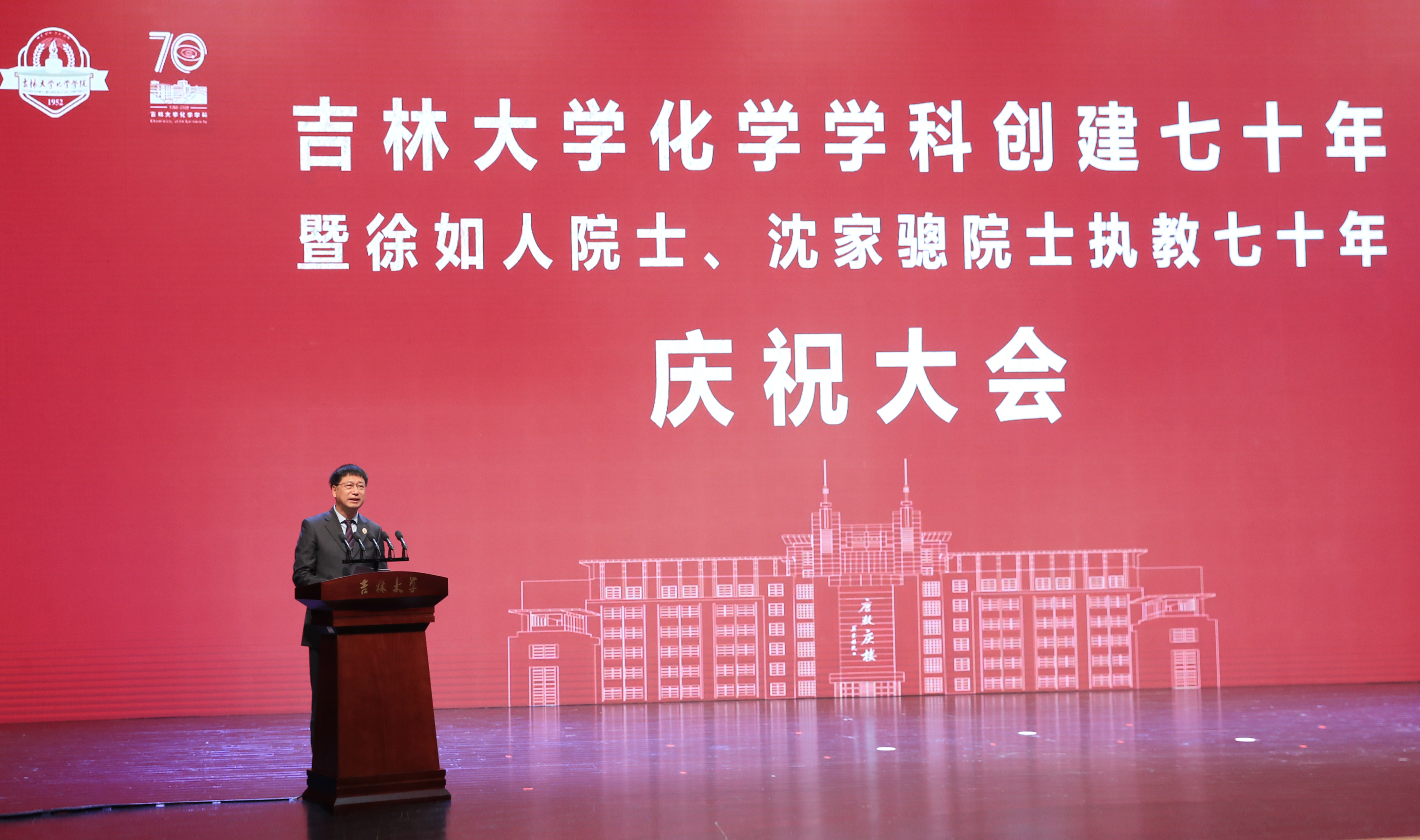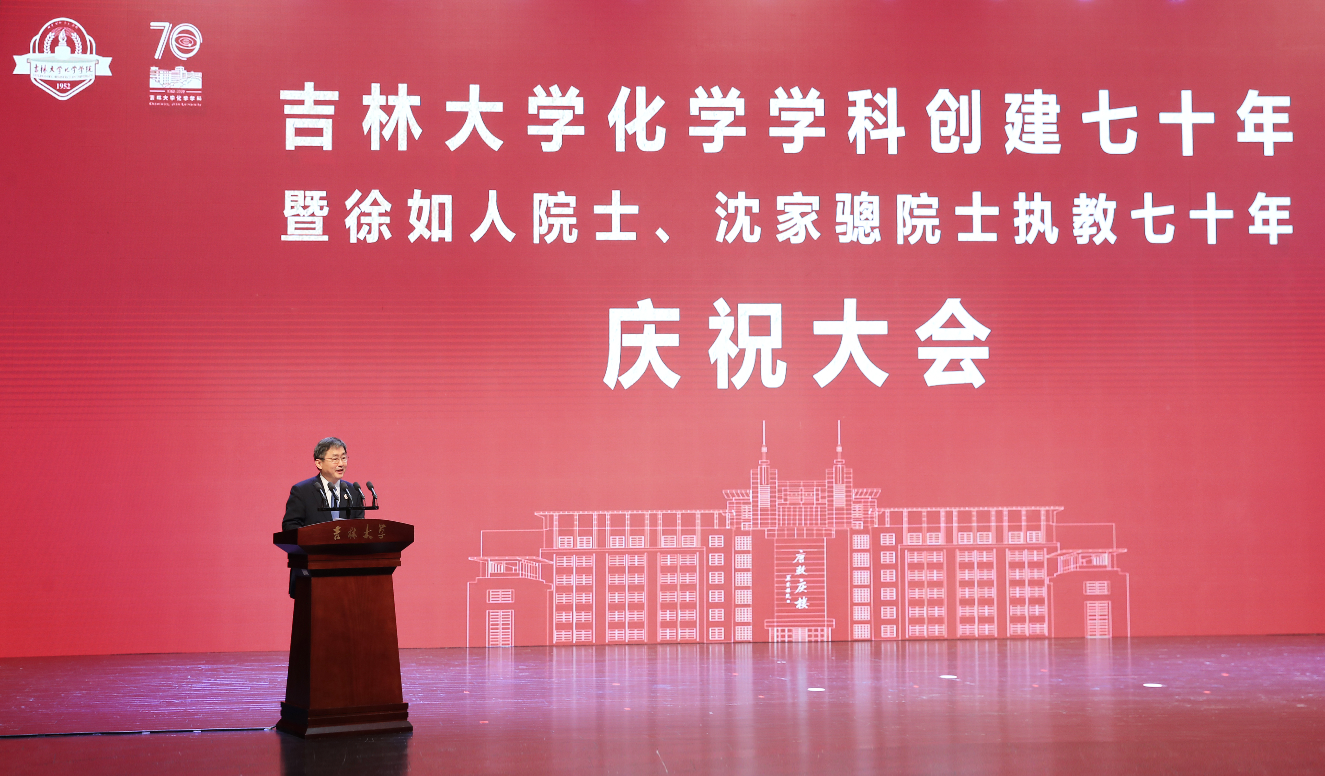 教师发言,向吉大化学七十华诞表示祝贺,向徐如人院士、沈家骢院士致以崇高敬意和诚挚祝福。她表示,吉大化学的发展始终与国家高质量人才培养紧密相连,始终与国家重大需求紧密相连,始终与国际科技前沿紧密相连,始终与服务社会紧密相连,培养了一大批杰出人才,打造了一支堪当科教强国重任的师资队伍。站在新的历史起点上,学院广大教师将坚决扛起深入实施科教兴国战略、人才强国战略、创新驱动发展战略重大职责使命,传承优良传统,紧握接力棒,把化学学科推向新的高峰,在中华民族伟大复兴新征程上谱写新的荣耀与辉煌。