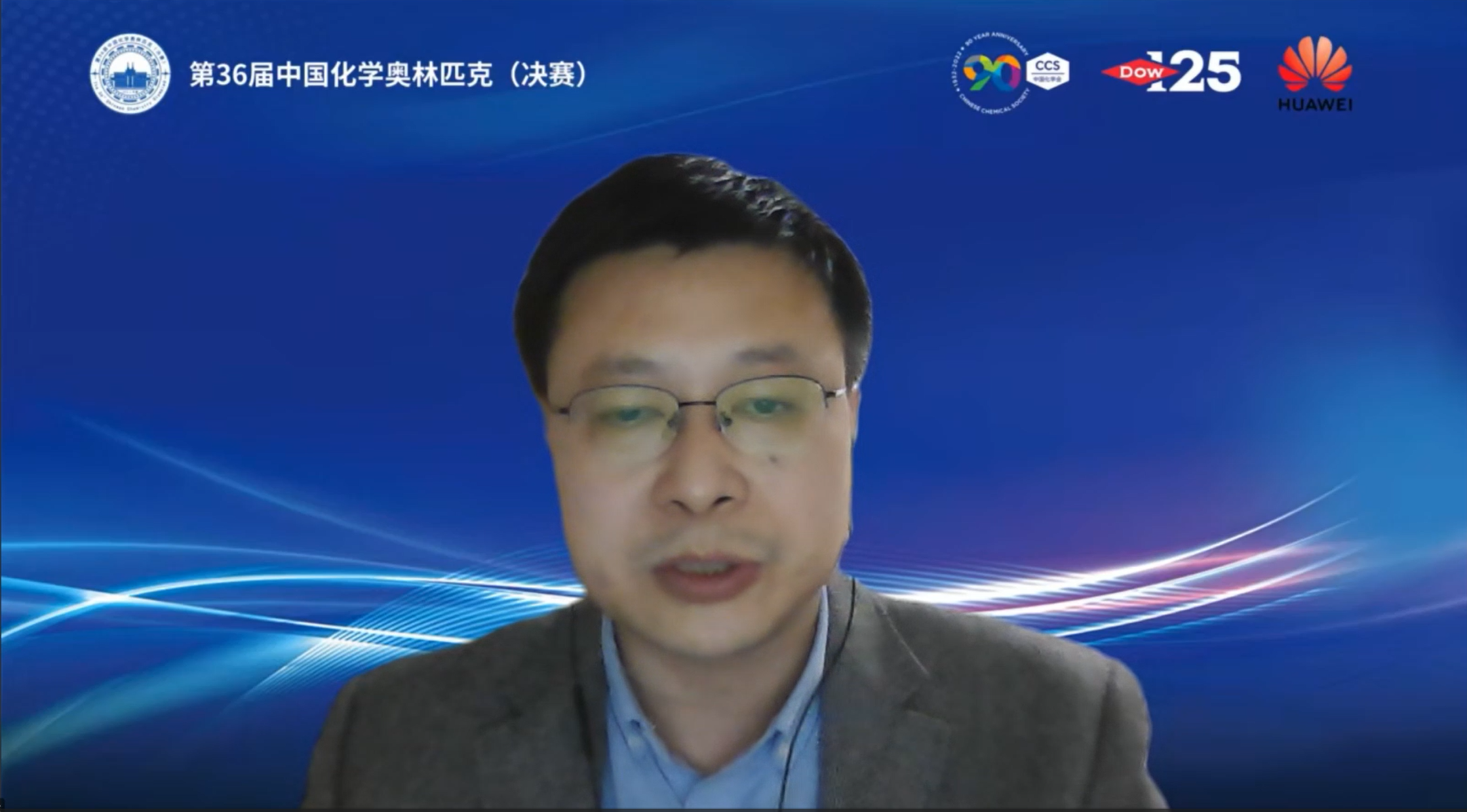 致辞,肯定了参赛学生对化学充盈的兴趣和激情,致敬了培育人才的中学老师们。他指出,过去化学是实验科学,而今实验、理论与计算是化学发展的三大支柱,研究对象从静态到动态、从无生命到有生命,化学的内涵不断丰富、外延不断拓展。他勉励学生,不但要打好自然科学基础,还要怀揣人文主义情怀,深刻理解化学是变化之学,体会“变与不变”的斑斓人生,坚守初心、坚定信心、坚持耐心,成就强国富民梦想。