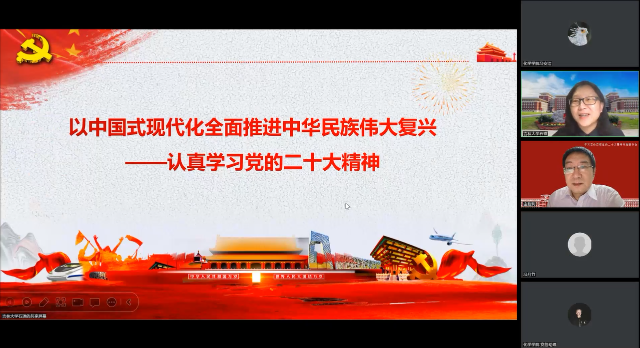 报告会上,石瑛教授做了题为“以中国式现代化全面推进中华民族伟大复兴”的专题报告。报告分为三个部分,第一部分阐述了党的二十大的重要意义。第二部分从党的二十大的主题、过去5年的工作和新时代10年的伟大变革、马克思主义中国化时代化、中国式现代化、全面建设社会主义现代化国家的目标任务、坚持党的全面领导和全面从严治党和应对风险挑战等七个方面阐述了党的二十大的精神实质。第三部分强调要原汁原味地学,系统全面地学,知行合一地学习二十大报告,全面贯彻党的二十大实践要求,奋进新征程。最后,石瑛教授用二十大报告的结束语“党用伟大奋斗创造了百年伟业,也一定能用新的伟大奋斗创造新的伟业。全党全军全国各族人民要紧密团结在党中央周围,牢记空谈误国、实干兴邦,坚定信心、同心同德,埋头苦干、奋勇前进,为全面建设社会主义现代化国家、全面推进中华民族伟大复兴而团结奋斗!”结束了本次报告。