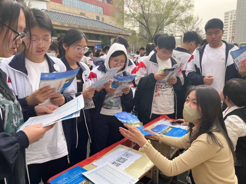赵增霞老师(左)、张思佳老师(中)、高娜老师(右)在辽宁朝阳二中咨询展位