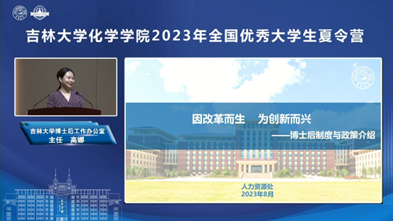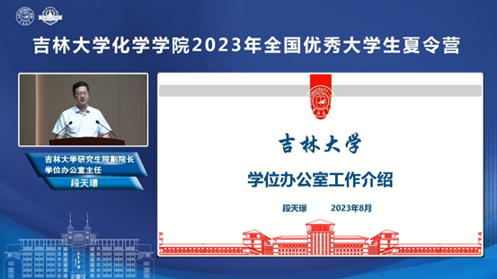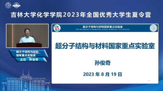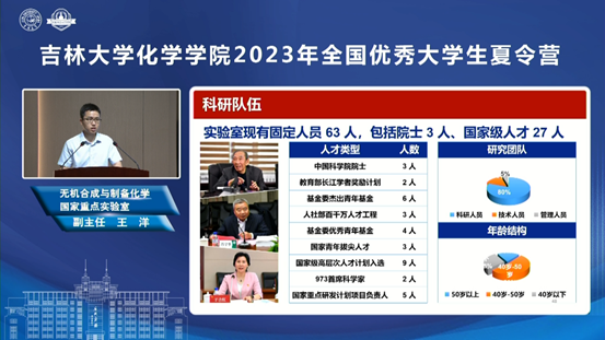 院长吕中元介绍了学院基本情况及人才培养优势;超分子结构与材料国家重点实验室主任孙俊奇、无机合成与制备化学国家重点实验室副主任王洋、特种工程塑料教育部工程研究中心副主任赵成吉、理论化学研究所朱有亮老师分别介绍了各科研平台的科研情况、招生方向等,并带领营员们以线上线下同步的形式参观了科研平台和特色课题组科研环境,让营员们能够近距离感受化学研究的魅力和吉大化学深厚的学术底蕴。
