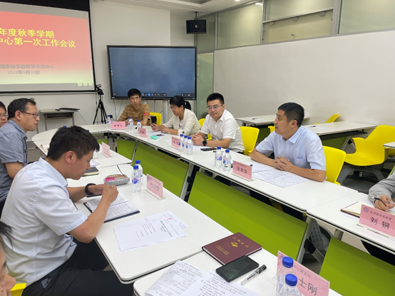副院长、实验示范中心主任郭玉鹏从实验示范中心近十年的发展情况、示范中心阶段性检查工作情况、未来建设规划等方面进行了总体介绍。各实验室负责人先后对本实验室运行情况进行了总结,提出了实验室面临的问题以及未来的工作计划。最后,党委书记马本华围绕实验示范中心教师队伍师德师风建设、能力提升路径,以及实验课程建设、实验项目更新等方面与大家进行交流。