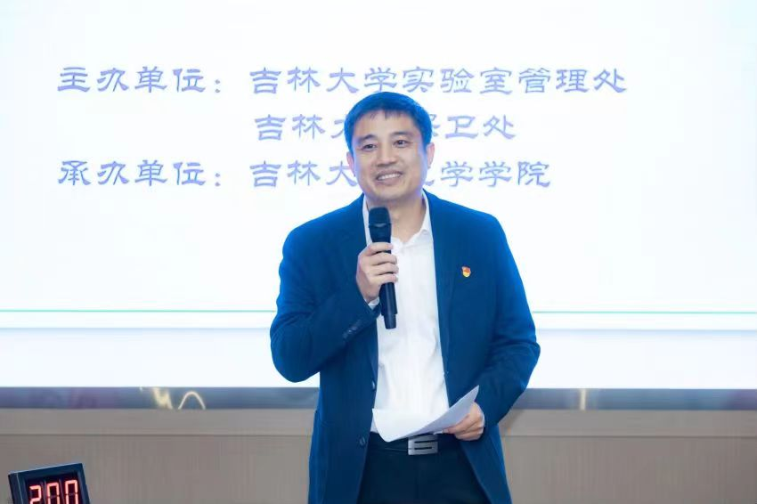 马本华在致辞中强调,化学是一门以实验为基础的科学,实验室安全十分重要,实验室安全工作关系到师生的生命安全和学院事业的平稳有序发展,希望通过此次比赛,增强广大师生的实验室安全意识,提高实验室安全事件应急处置能力,起到以赛促学,以赛促建的作用。