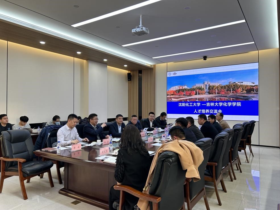 副院长李乙介绍了学院基本情况,重点围绕学院研究生招生、课程建设、国际交流、就业等方面详细介绍了吉大化学研究生全过程培养体系;沈阳化工大学理学院院长李文泽介绍了沈阳化工大学基本情况和人才引育政策。与会人员就人才引进、研究生培养、科研合作等领域进行了充分的交流与讨论。
