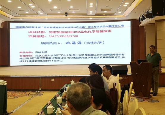 牵头,北京工业大学、浙江工业大学、四川大学等15家单位共同承担的国家重点研发计划“高附加值精细化学品电化学制备技术”项目(2017YFB0307500)中期检查总结会,于2019年9月27日至9月28日在福州召开,科技部高技术研究发展中心组织专家对项目的执行情况进行了检查。科技部高技术研究发展中心材料处蒋志君副处长、中期检查专家组成员、项目负责人林海波教授以及各课题负责人、各课题参与单位领导和研发骨干等40余人参加了会议。