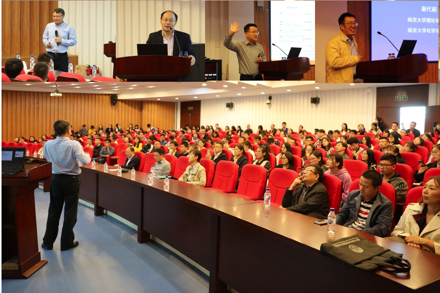 研讨会后,在无机超分子楼一楼报告厅举行了理论化学前沿论坛系列报告会。帅志刚、黎书华、徐昕、谢代前四位校外专家和理论化学研究所李辉、钟荣林、郑清川、白福全四位青年教师分别做了学术报告。