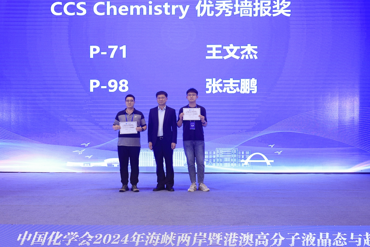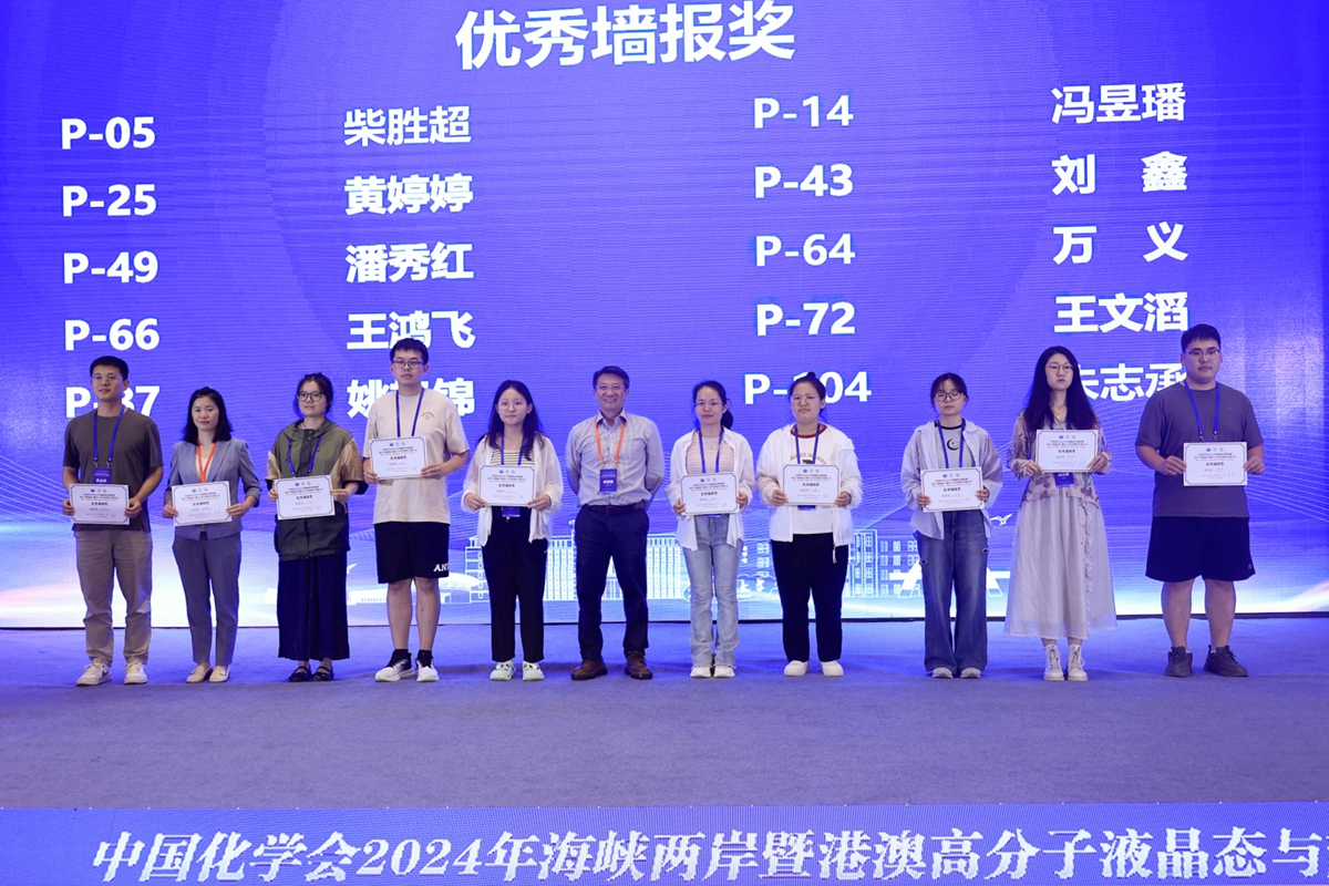 在为期两天的学术交流与研讨中,唐智勇、何荣铭、王钻开、郭绍伟、孙俊奇先后作了题为“纳米自组装多孔膜”“嵌段高分子和手性嵌段高分子自组装”“基于固液特征尺度匹配的超材料设计及应用”“基于软物质材料建构阿基米德镶嵌结构”和“可逆交联聚合物”5个精彩的大会报告。在6个主题论坛中,与会专家学者围绕“液晶高分子的分子工程学”“超分子体系的组装与识别”“自组装体系的理论与表征”“液晶高分子功能材料”“可逆交联与自适应聚合物材料”和“生物超分子组装与功能”作了170个邀请、口头和快闪报告,并展示交流了104份墙报。组委会从中评选出了2个CCS Chemistry优秀墙报,10个会议优秀墙报,以及12个优秀的快闪报告。闭幕式上,张希、何荣铭、孙俊奇分别为获奖代表颁发证书。黄色视频