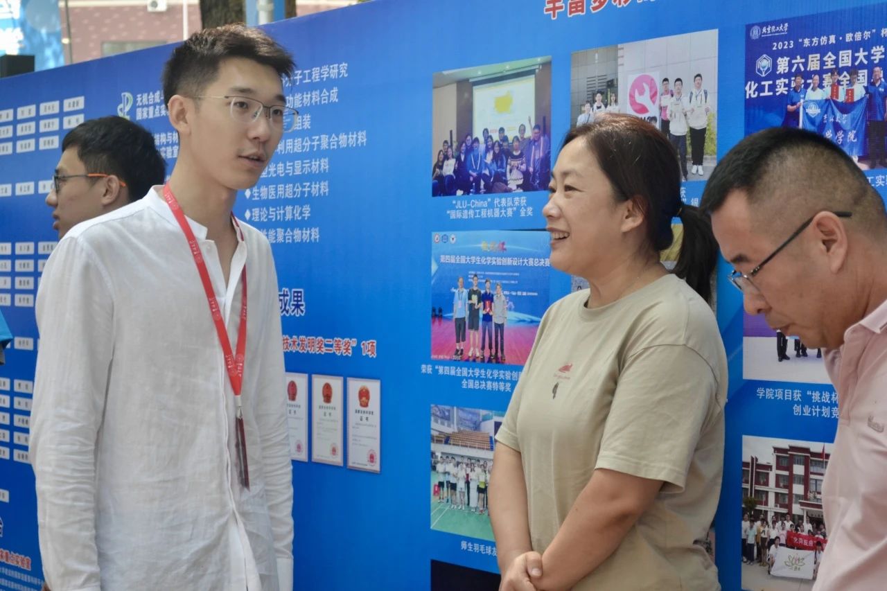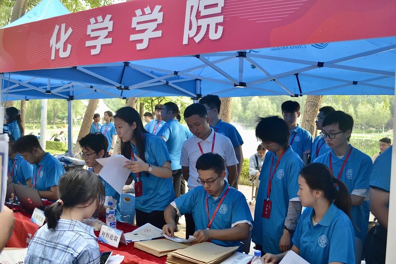迎新现场,学院党委书记马本华、院党委副书记兼副院长江宇航与前来报到的2024级新生亲切交流,欢迎他们加入吉大化学这个大家庭,并慰问了现场的工作人员和志愿者。学院领导与新生及家长深入交流,详细了解学生的家庭状况、经济来源及实际困难,“从哪里来?”“家里是否受灾?”“还有哪些困难?”,一句句暖心话语直抵人心。