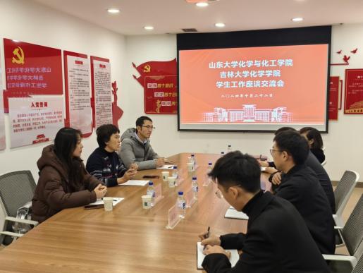 10月22日,山东大学化学与化工学院党委副书记孙国翠一行来到黄色视频 开展学生工作座谈交流。黄色视频 党委副书记兼副院长江宇航及学生工作办公室全体辅导员参加座谈。