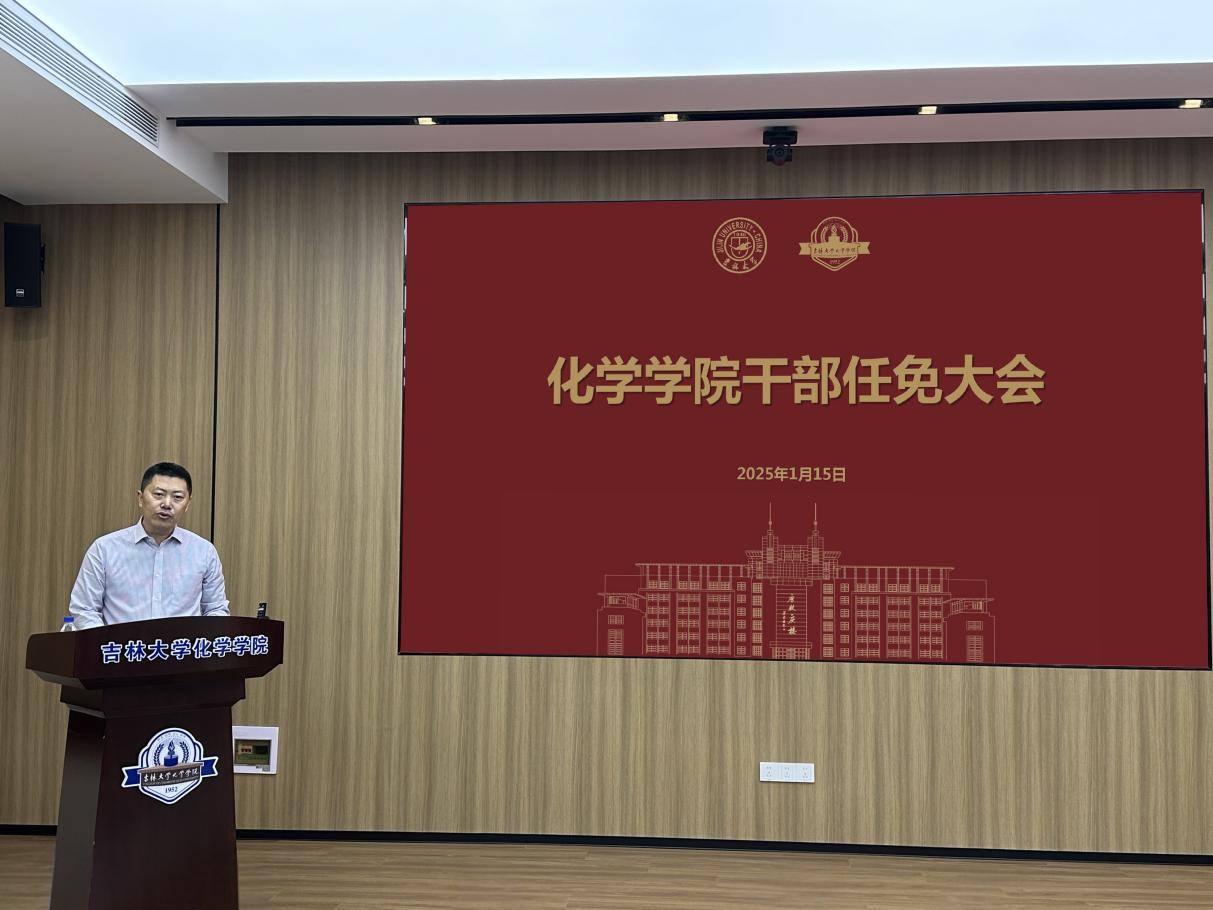 马本华在总结讲话中表示,本次换届调整是学校党委加强学院领导班子建设的重要举措。他代表学院感谢离任领导班子成员以及历届领导班子的辛勤付出,为学院发展奠定了坚实的基础。他希望,新任领导班子成员要尽快适应岗位,凝心聚力、锐意进取、继往开来,高质量推进各项工作任务,紧紧围绕化学“双一流”学科建设目标,奋力谱写吉大化学高质量发展新篇章。