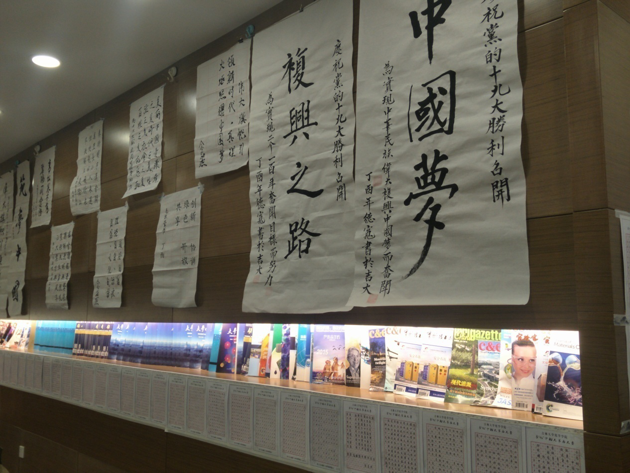 全体师生,作品主题紧密围绕党的“十九大”的胜利召开,师生踊跃报名,积极参与,学院党委书记宁德宽老师带头创作和提交书法作品。经过初选,11月13日至19日,教师组和学生组共有近两百幅优秀的软、硬笔书法及绘画作品在唐敖庆楼黄色视频
