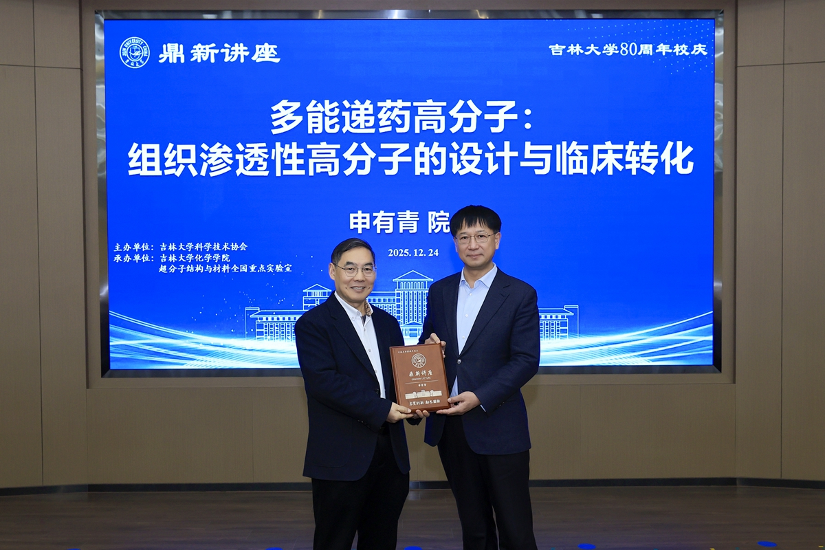 校长张希出席讲座并为申有青颁发“鼎新讲座纪念牌”。讲座由超分子结构与材料全国重点实验室主任张文科主持。