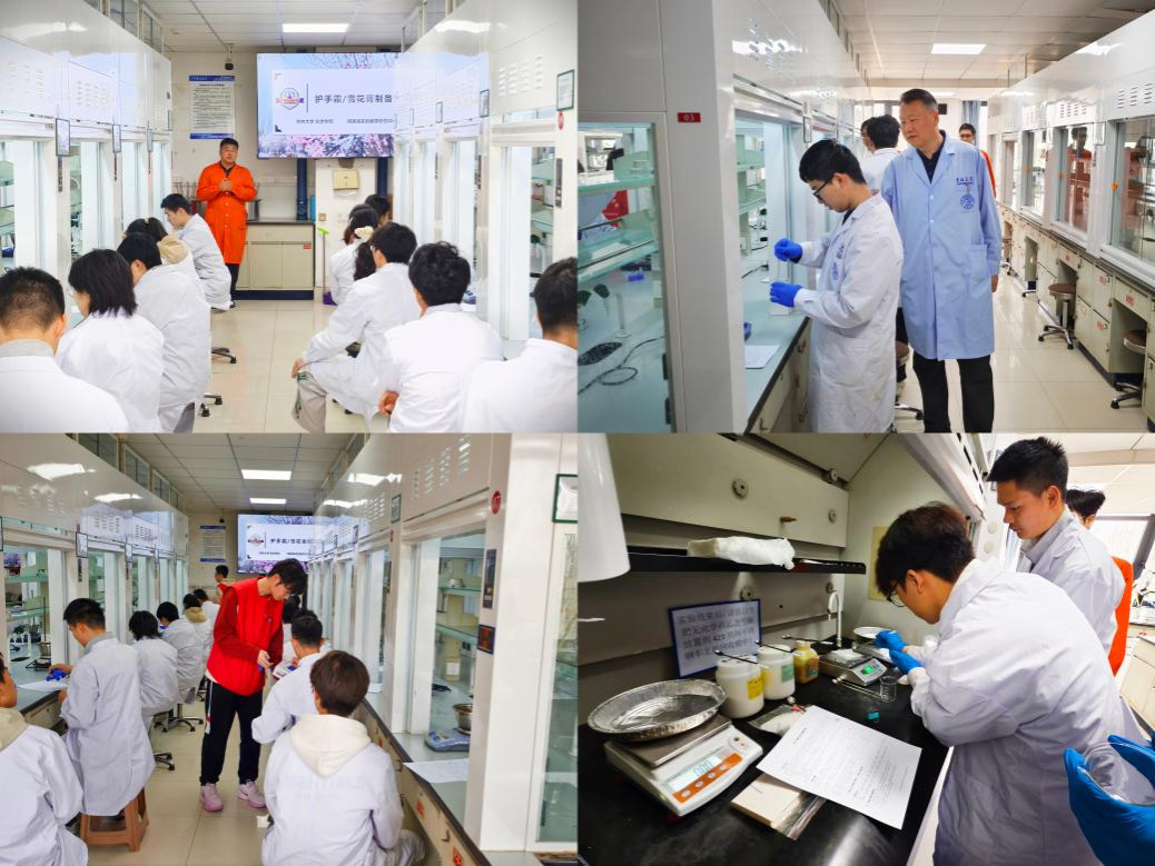随后,同学们走进化学国家级实验教学示范中心。实验室老师首先简要介绍了中心整体情况。在老师的逐步指导下,同学们认真学习了实验安全规范与标准操作流程,并亲自动手,完整实践了从原料称量到反应制备的全流程。通过贴近生活的实验内容,同学们切实感受到化学与生活的紧密联系,进一步激发了科研兴趣与探索热情。