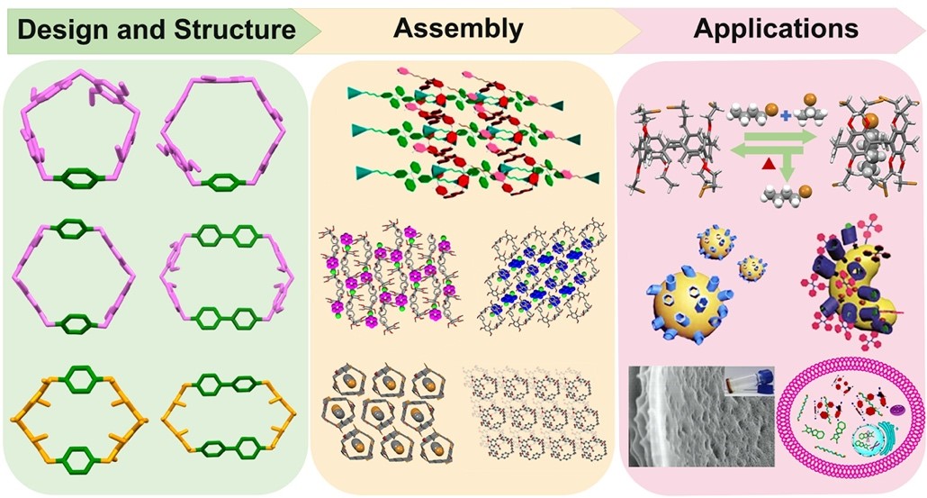 、纳微构筑化学国际合作联合实验室杨英威教授课题组在柱芳烃衍生的新型大环芳烃受体的设计合成及其超分子材料构筑与功能开发等方面取得了系统性的研究进展。