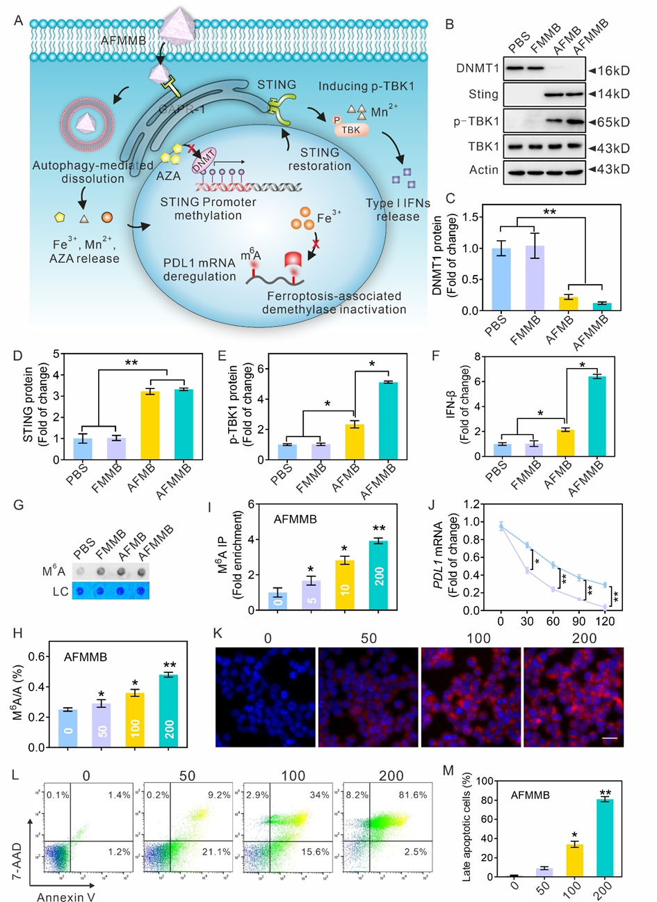 图4. AFMMB通过调控DNA和RNA甲基化介导的STING和PD-L1表达