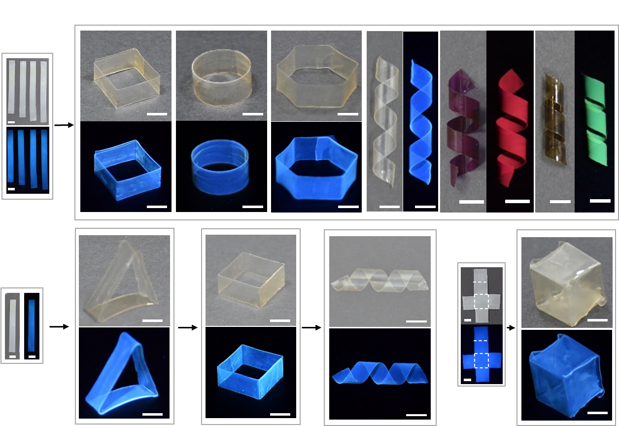 超分子结构与材料国家重点实验室李云峰教授课题组与杨柏教授、吕中元教授课题组合作开发了由碳点自组装的宏观材料。该材料不仅继承了碳点的荧光性质且可通过掺杂其他碳点实现荧光的颜色可调(图1)。更重要的是,该材料具有耐溶剂性、自愈性、可回收性和优异的力学性能,杨氏模量超过490 MPa,断裂强度超过30 MPa。经过多次循环利用后仍基本保持原有的机械性能(图2)。分子动力学模拟表明,材料的力学性能取决于碳点间和碳点内氢键的相互协同作用。此外,该材料可以通过环保的水塑法加工为各种形状(图3)。这项创新工作拓展了碳点研究领域的新方向;为探索由纳米粒子组装的功能宏观材料提供了新方法和新思路,将加速纳米材料在实际应用中的创新发展。该工作近期以“Recastable assemblies of carbon dots into mechanically robust macroscopic materials”为题发表在国际著名期刊《Nature Communications》上(Nat. Commun.14, 6782 (2023))。黄色视频