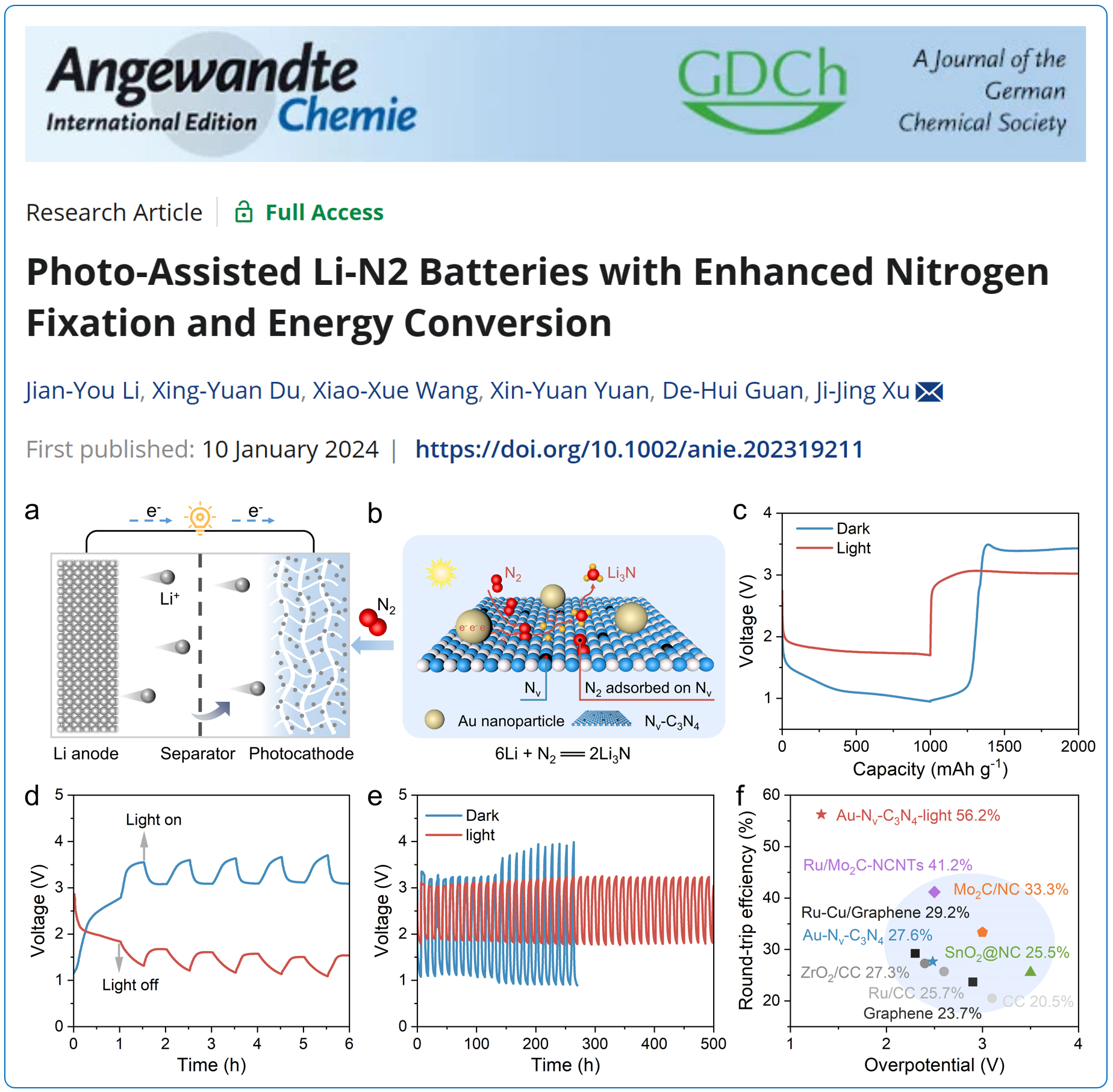 论文详情:Jian-You Li, Xing-Yuan Du, Xiao-Xue Wang, Xin-Yuan Yuan, De-Hui Guan, and Ji-Jing Xu*, Photo-Assisted Li-N2Batteries with Enhanced Nitrogen Fixation and Energy Conversion,Angew. Chem. Int. Ed., 2024,e202319211.