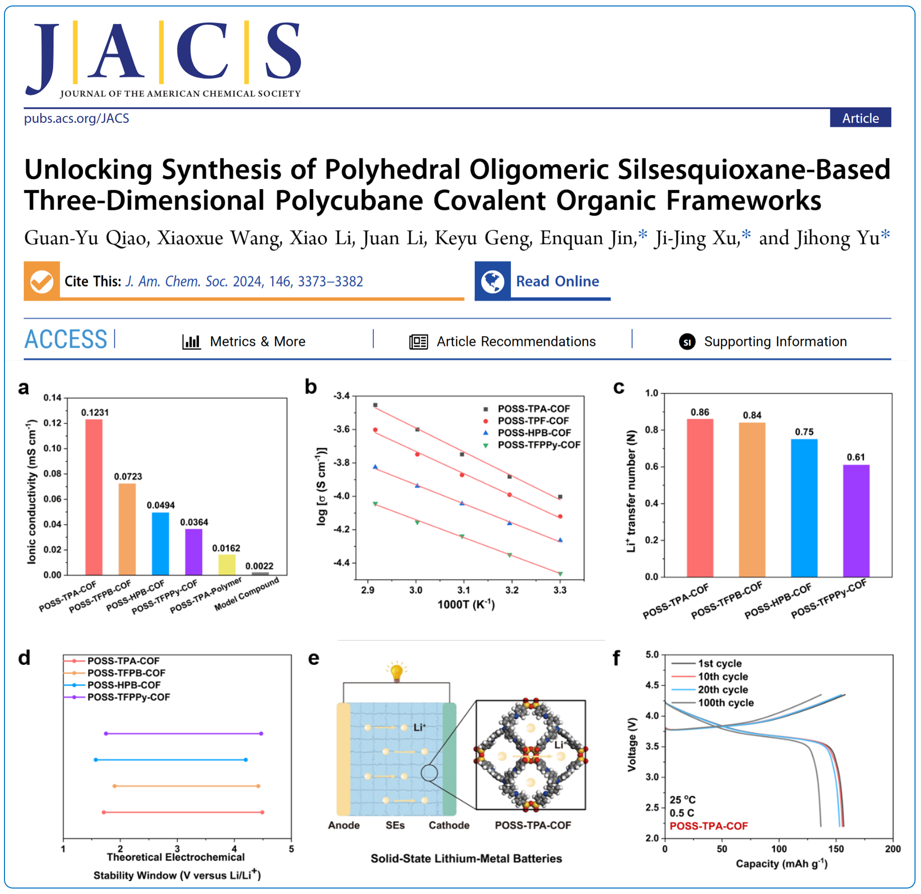 论文详情:Guan-Yu Qiao, Xiaoxue Wang, Xiao Li, Juan Li, Keyu Geng, En quan Jin*, Ji-Jing Xu*, and Jihong Yu*, Unlocking Synthesis of Polyhedral Oligomeric Silsesquioxane-Based Three-Dimensional Polycubane Covalent Organic Frameworks,J. Am. Chem. Soc., 2024, 146, 3373–3382.