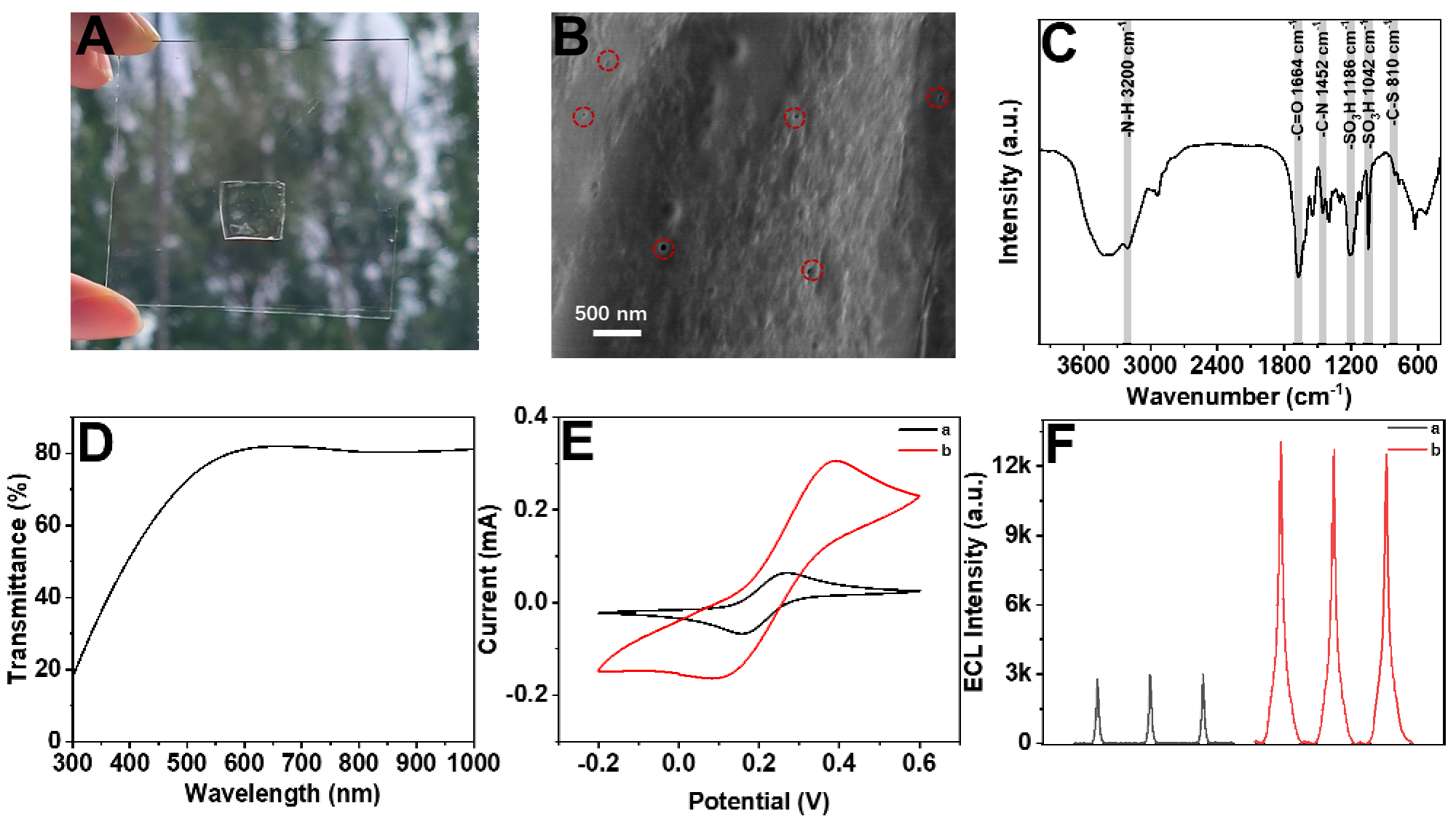 本工作创新性在于合成了一种具有高透明度、离子导电性和优异粘附性能的PAMES水凝胶作为准固态电解质用于ECL传感探索,研究综合了水凝胶高含水量、良好离子导电性以及材料稳定性等特点,能够从根本上解决传统液态电解质ECL体系存在的问题。不仅有助于推动ECL技术在食品检测、生物医学诊断、环境监测等多个领域的深入应用,提高检测的准确性、便捷性和可靠性,还为促进相关领域学科交叉融合、推动分析检测技术的发展提供创新的技术手段和策略。