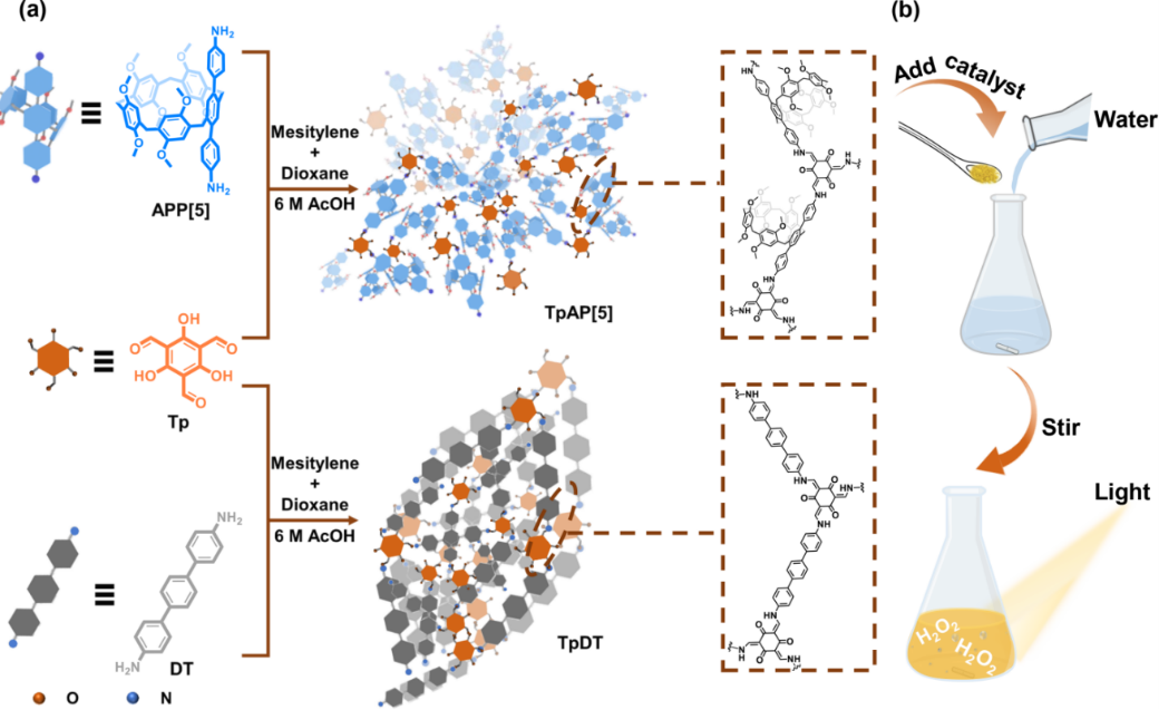 该研究不仅开发了一种用于H2O2光合成的超分子催化剂,还系统地研究了引入柱芳烃增强催化速率的机理,为共轭大环聚合物在太阳能驱动有机合成领域的应用提供了新思路。