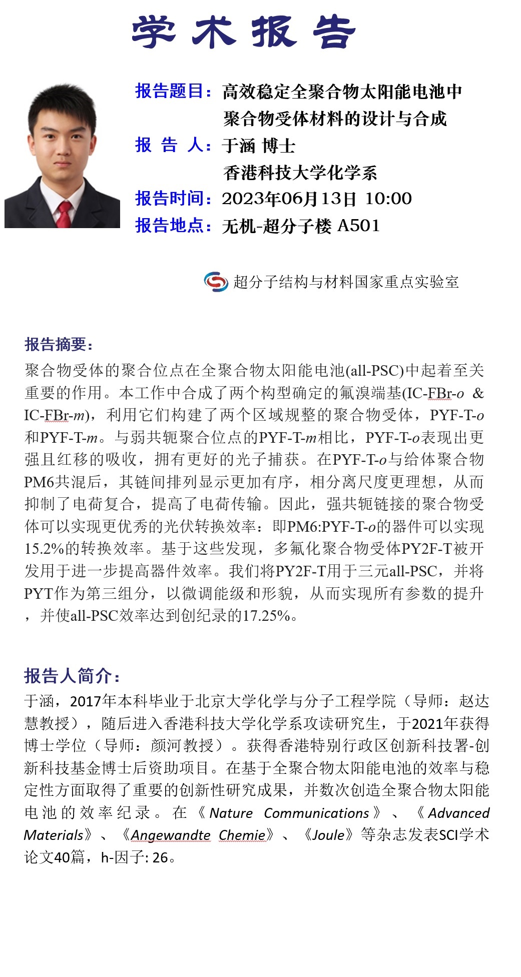 高效稳定全聚合物太阳能电池中聚合物受体材料的设计与合成