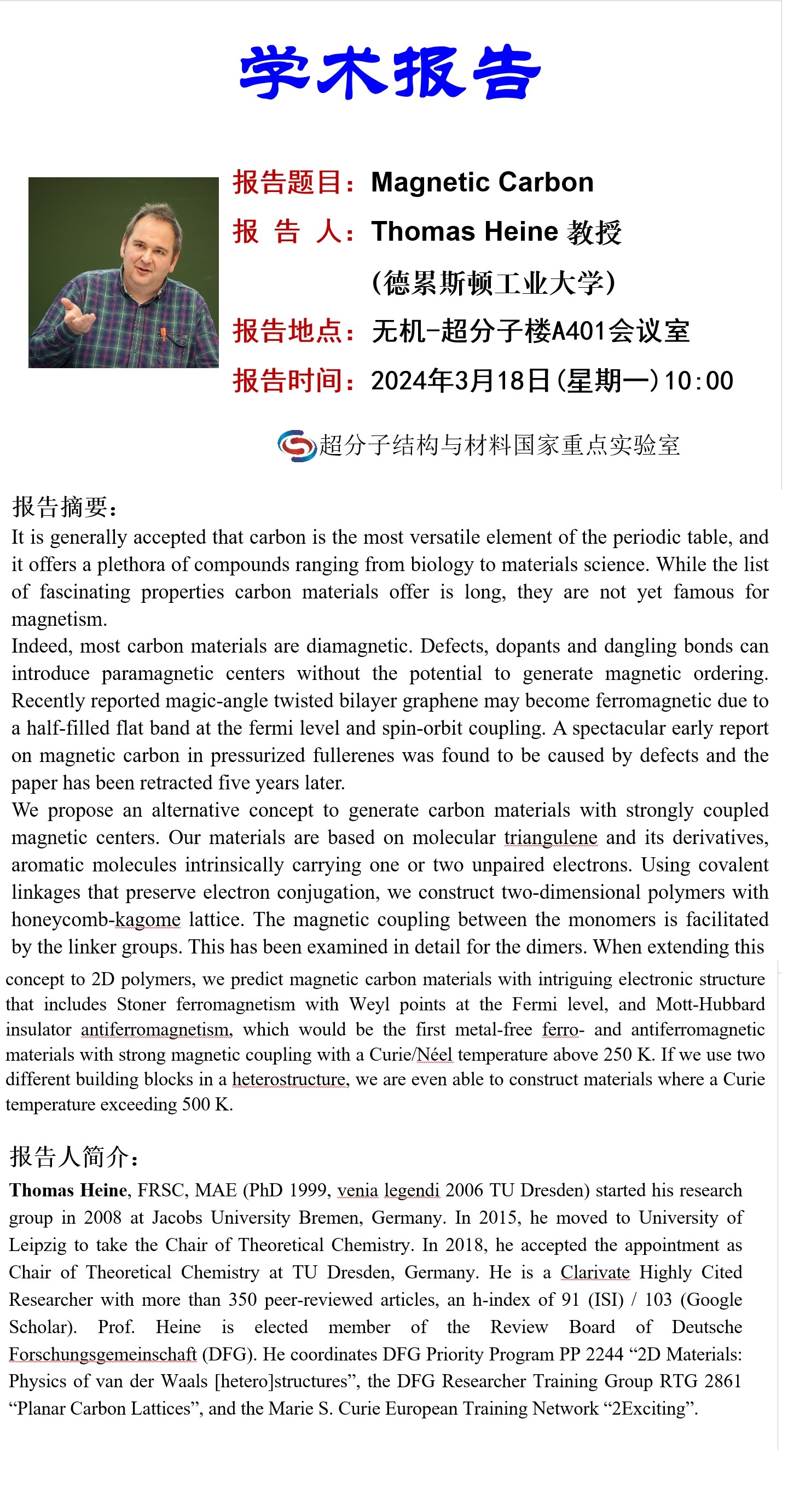 中心校区 无机-超分子楼A401会议室