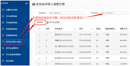 研究生师生信息综合库”(//one.hscrsp.com/),在【奖学金成果积分】栏进行查询(见下图说明)。初评获奖候选人再次核实自己是否填报【奖学金申报人信息】,涉及发放奖学金银行卡信息等。