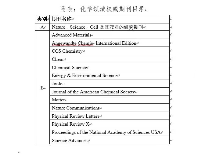 (1) 发表化学领域权威期刊研究论文1篇(权威期刊目录见附表);