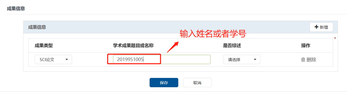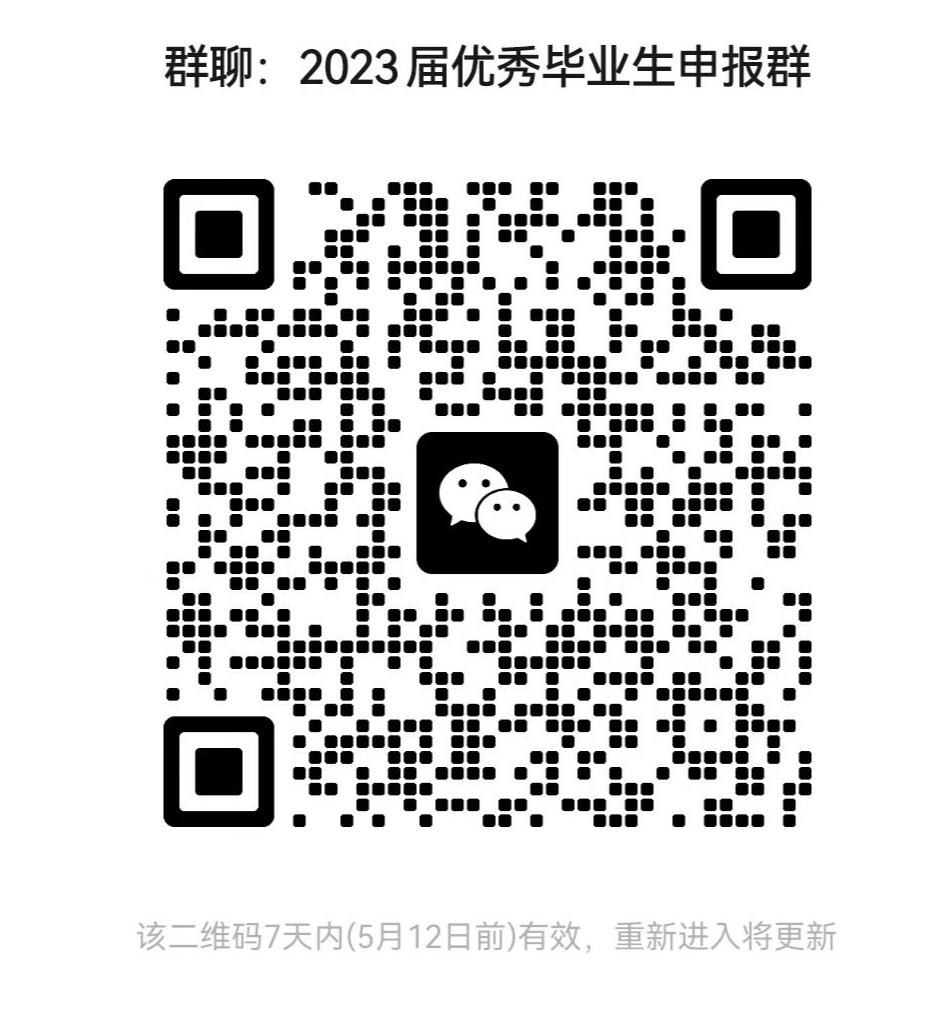 申报研究生于58日前使用个人邮箱账号登录“一张表”平台//one.hscrsp.com,在“研究生评奖评优管理”-“研究生评奖评优申报”栏,点击“新增”进行信息填报及佐证材料上传,其中成果信息只需要输入“姓名或者学号”,然后在已审核通过的成果库中选择3篇代表作参评。同时扫码入“2023届优秀毕业生申报群”。成果库中未录入的成果需及时录入-导师审核-科研办姜老师审核