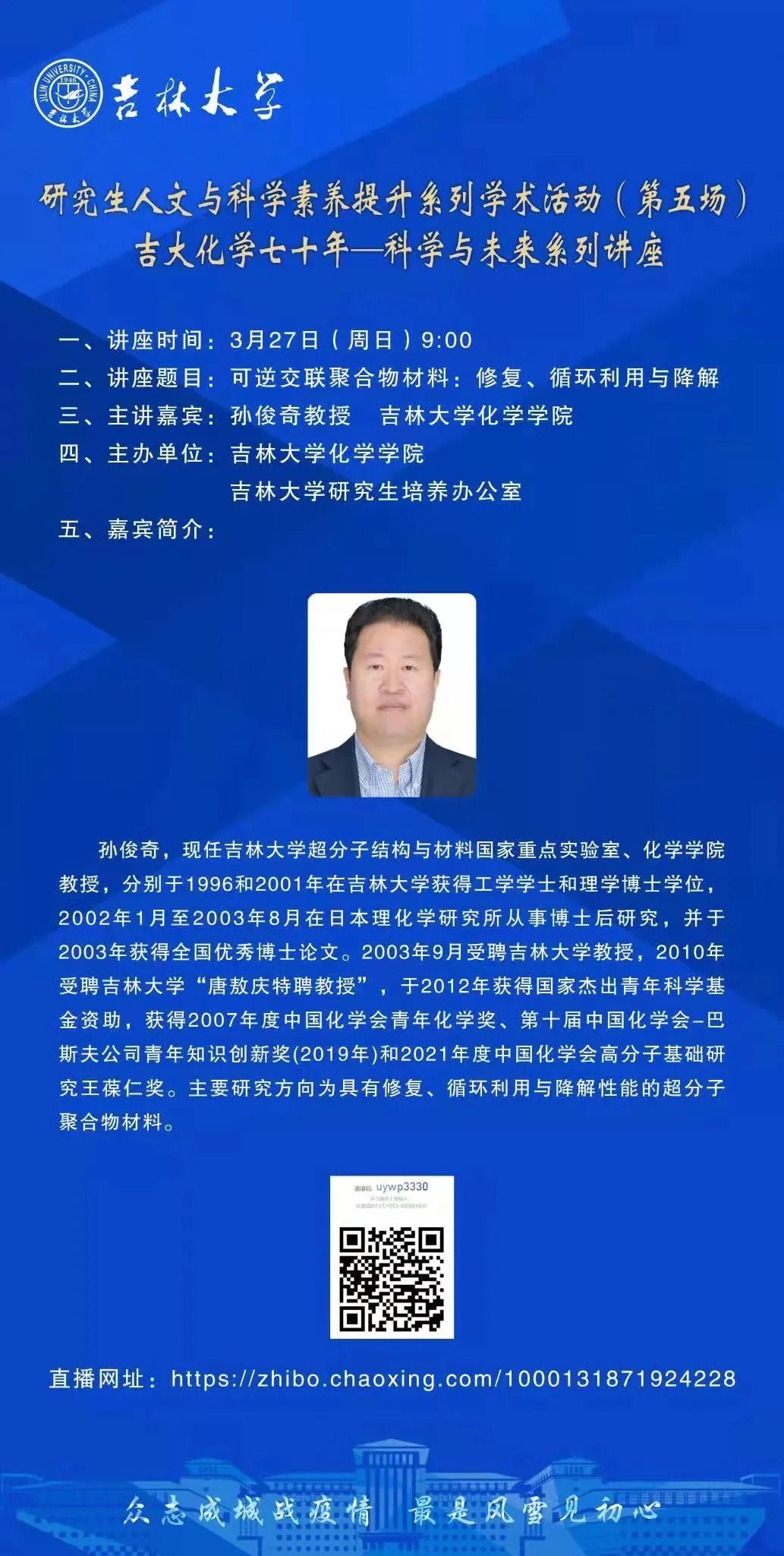 吉大化学70年院庆系列活动——科学与未来系列讲座:可逆交联聚合物材料:修复、循环利用与降解